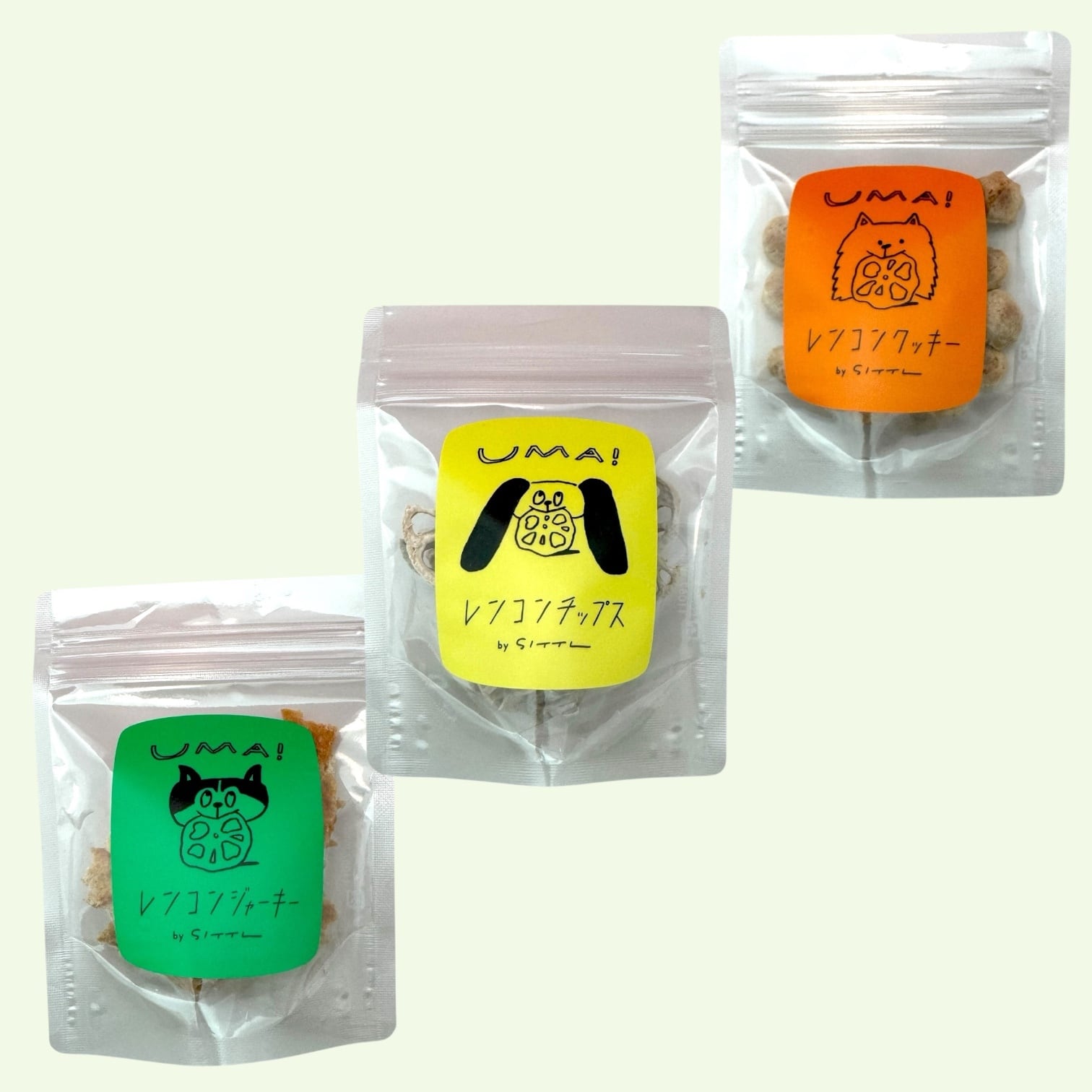 名称:ペット用おやつ(レンコンチップス・レンコン入りジャーキー・レンコン入りクッキー)